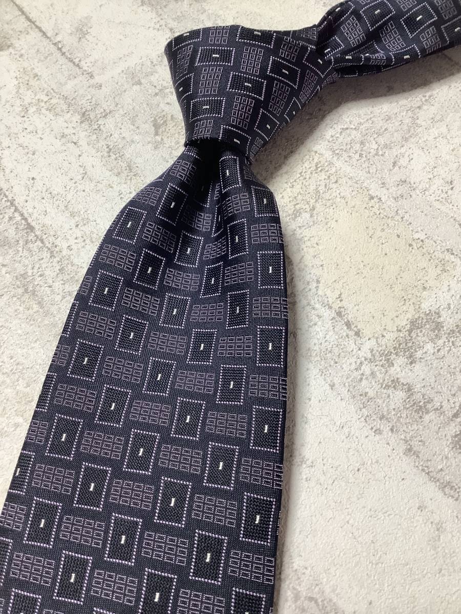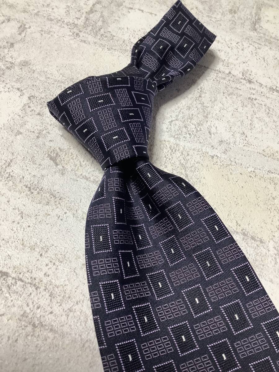 新品最高級 柔らかタッチ 定価7,480円の品 紺パープル配色 日本製シルクネクタイ!京都織物使用 薄い芯使用で結びやすさバツグン