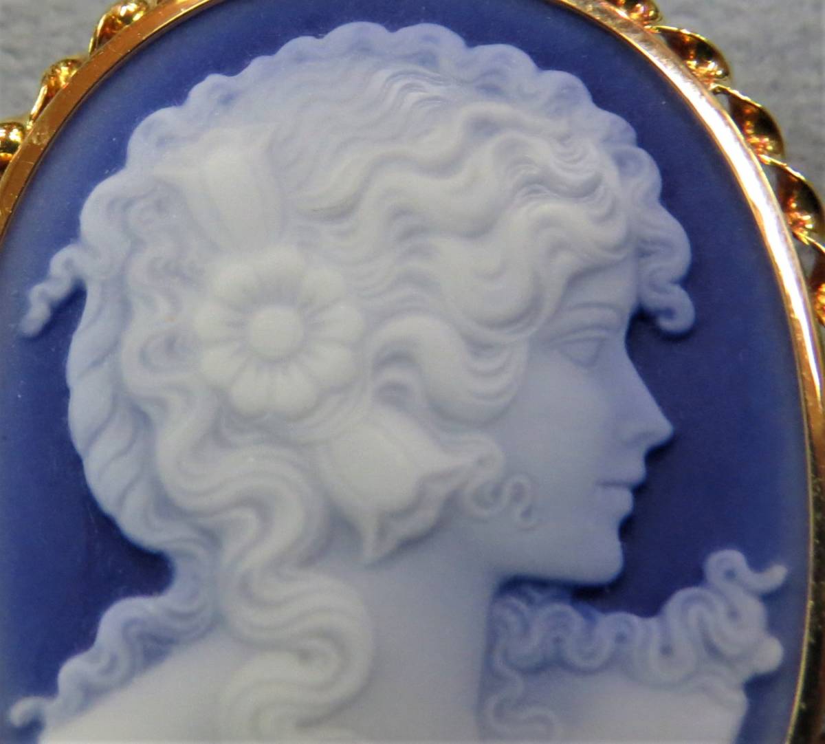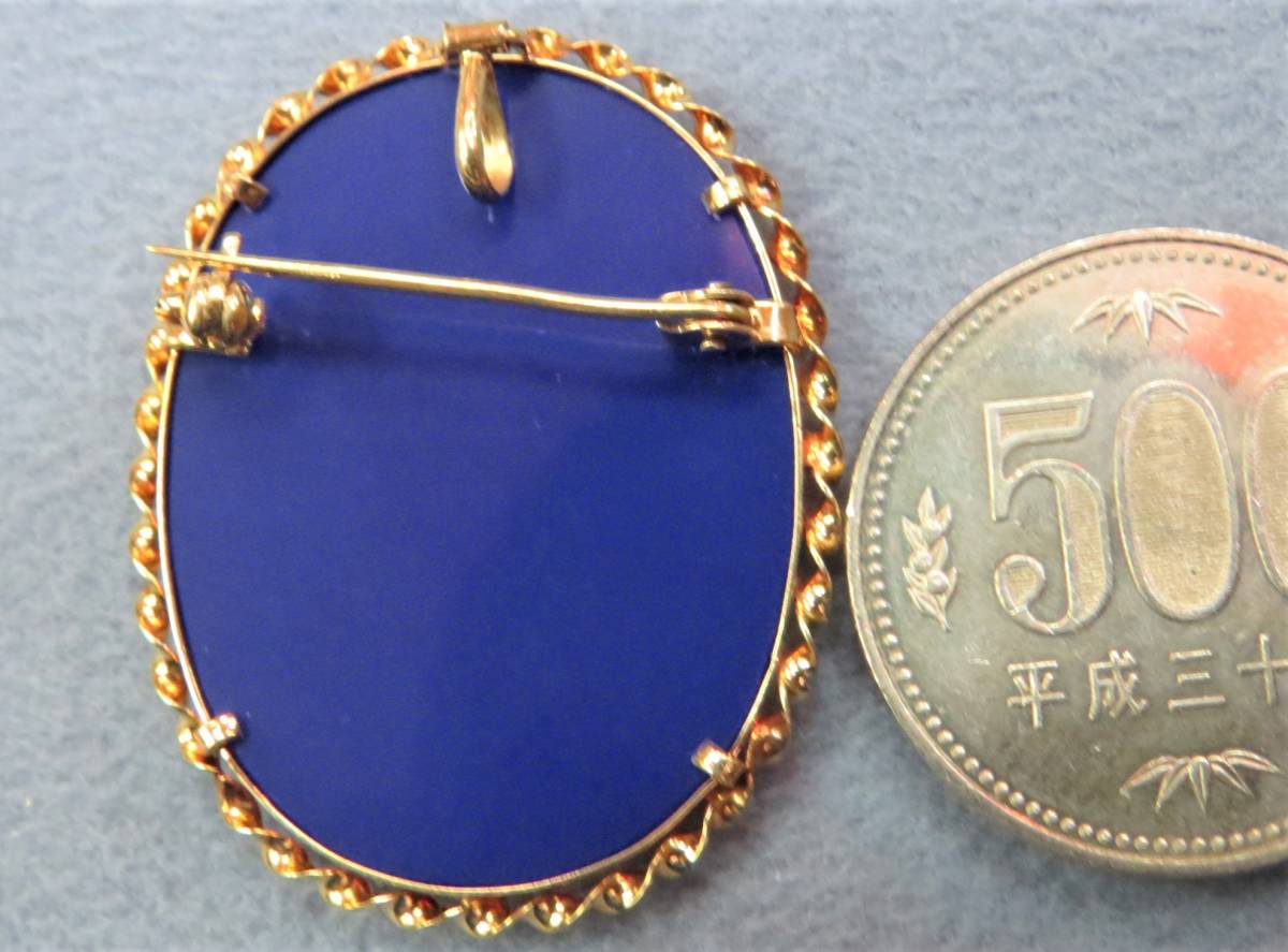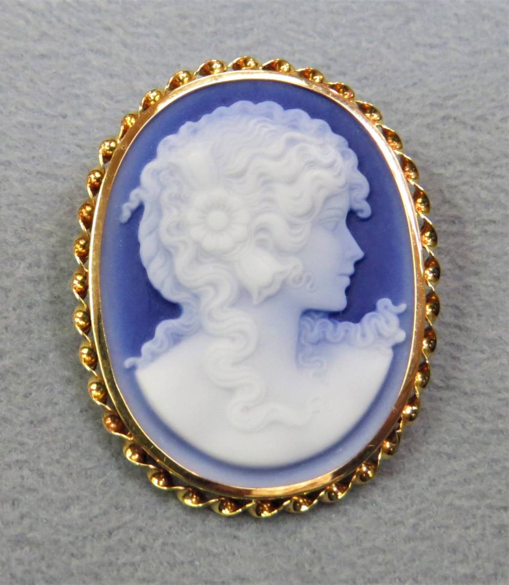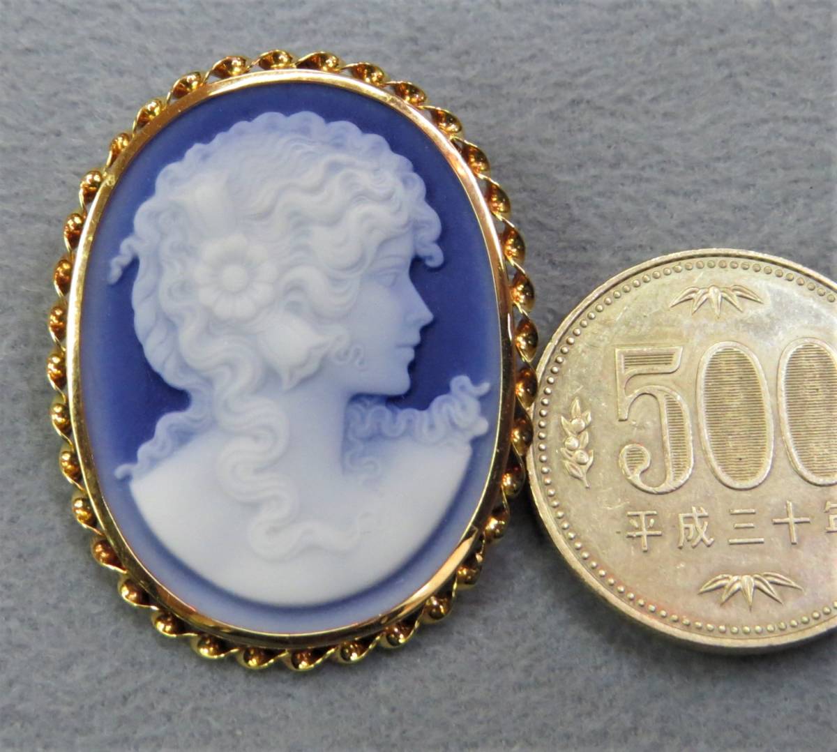 ♪色の良い、上質な【天然:ブルーメノウ】に、上品な女性像を、芸術的・精密・精細に彫りの【カメオ】を、【K18】製の枠に留めた、