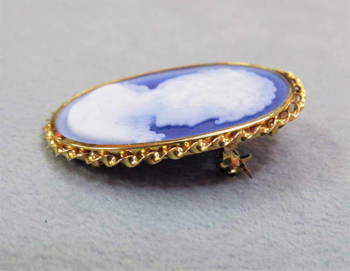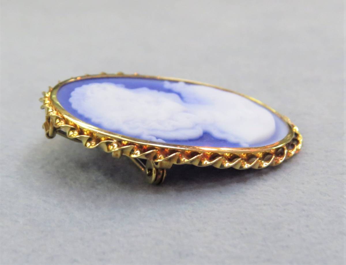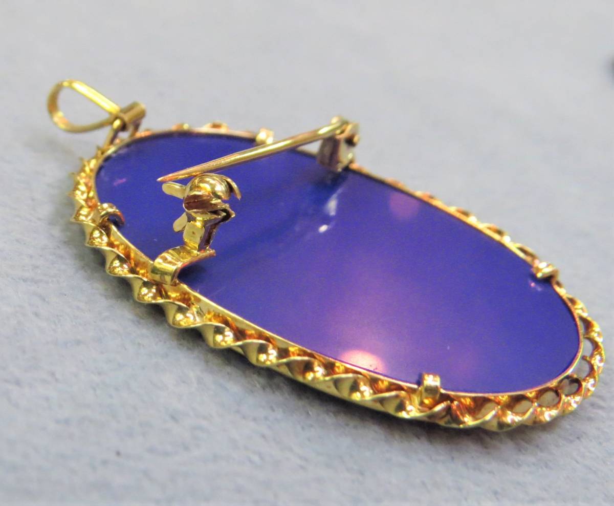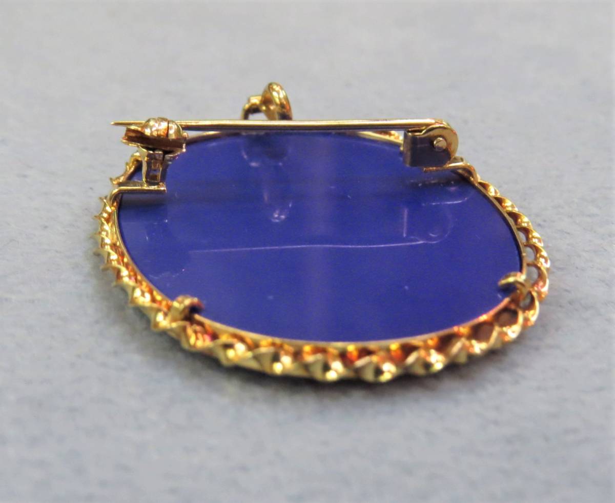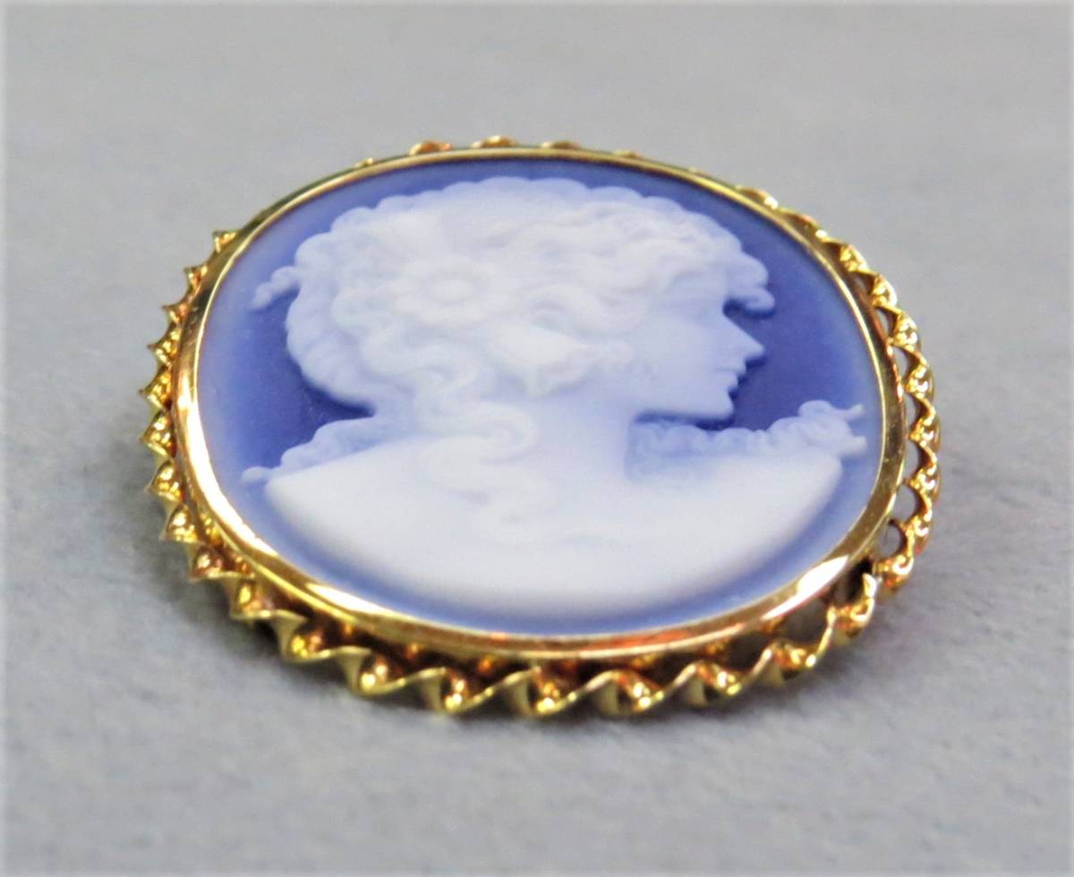 ♪色の良い、上質な【天然:ブルーメノウ】に、上品な女性像を、芸術的・精密・精細に彫りの【カメオ】を、【K18】製の枠に留めた、