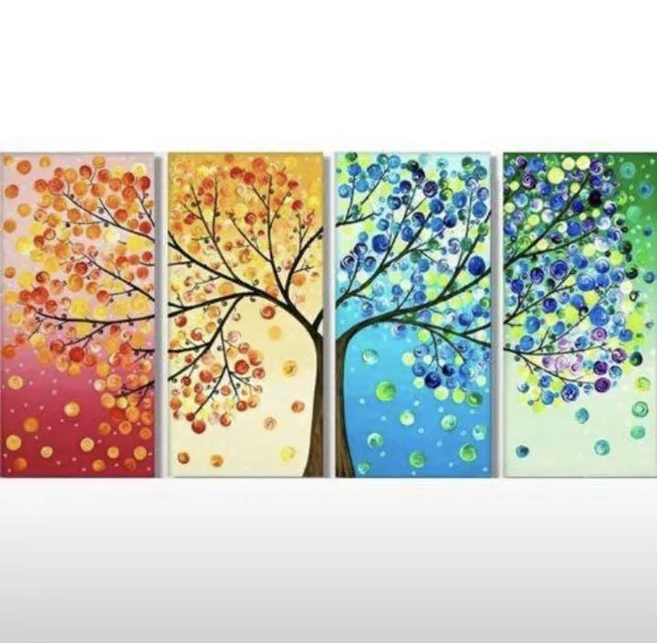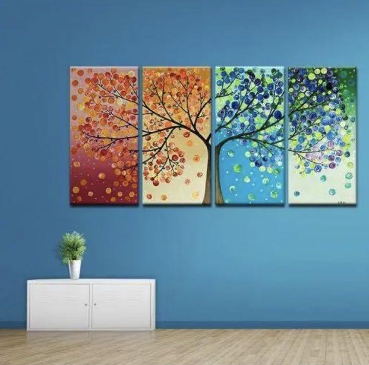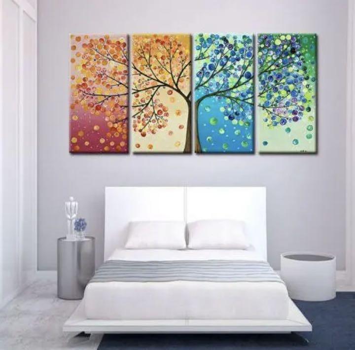 4点セット 絵画 アートパネル インテリア おしゃれ 壁掛け 北欧 葉 花 緑 植物 軽量 風水 玄関 寝室 部屋 リビング トイレ モダン 四季