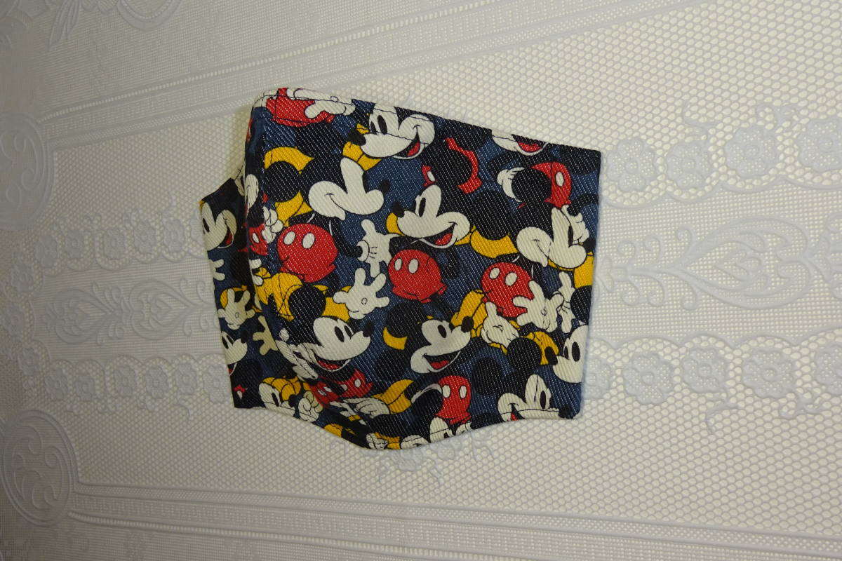 Mサイズ デニム調 ネイビー ミッキーマウス キャラクター ノーズワイヤー入り インナーマスク ハンドメイド