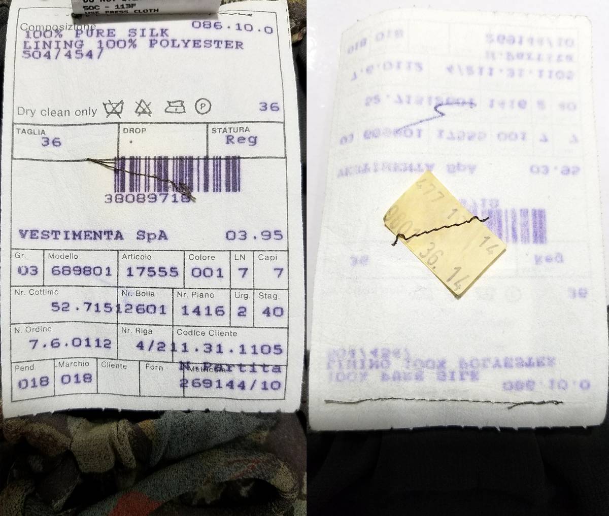 イタリア製 VESTIMENTA SPA A MILANO BORGONUOVO 21 |
