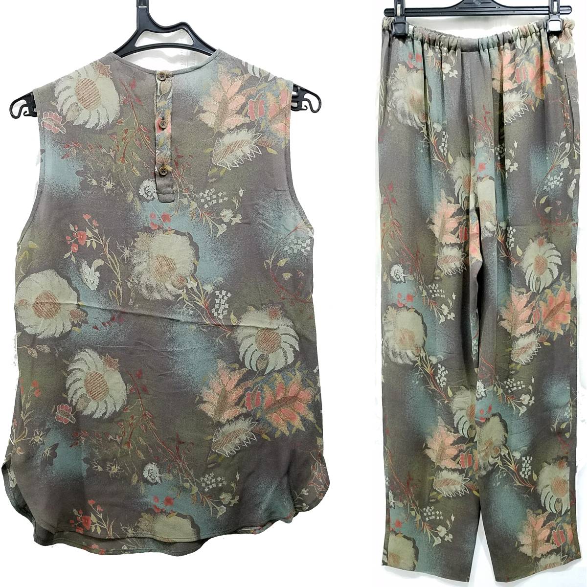 36 トップス 着丈:約64cm 肩幅:約35cm 身幅:約45cm パンツ ウエスト:約62cm(ゴム入りで縮んだ状態です)※ゴムは伸びます。 股上:約30cm 股下:約65cm 渡り巾:約28.5cm 裾巾:約16cm |