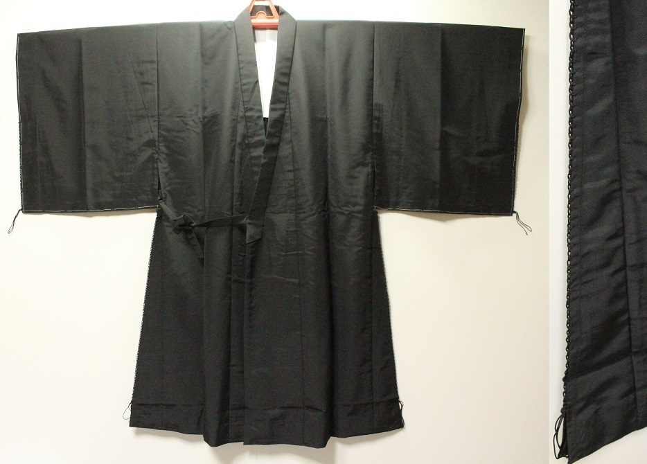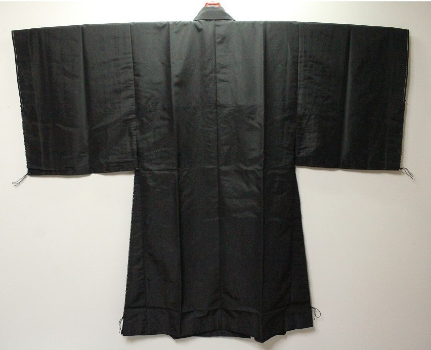 素材:ポリエステル。着丈117cm、裄72.5cm、後幅39.5cm。重さ500g。経年保管品になり多少ニオイを感じる場合はクリーニングしてご使用ください。