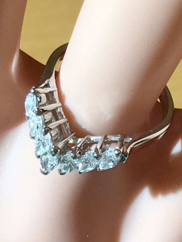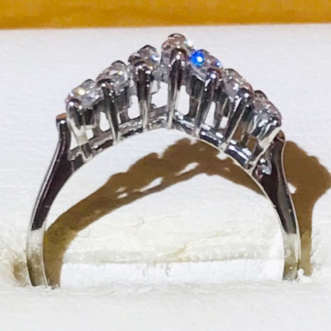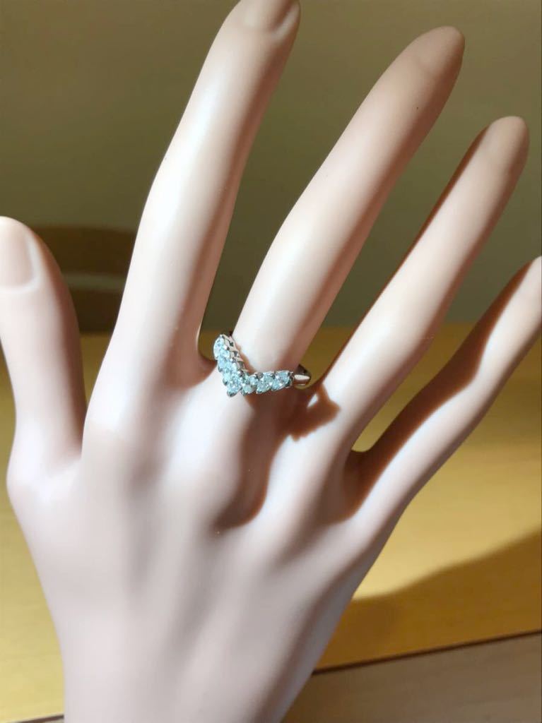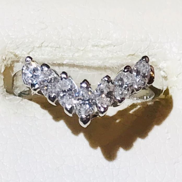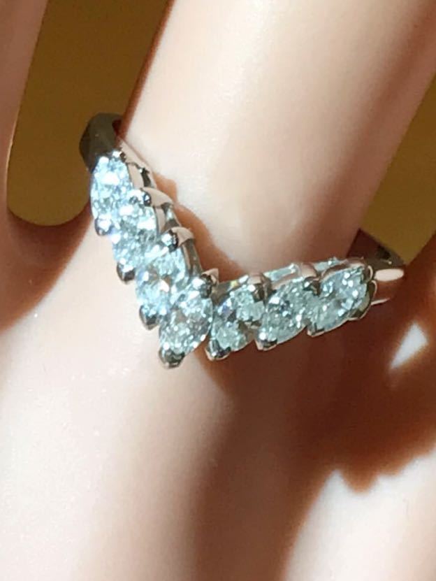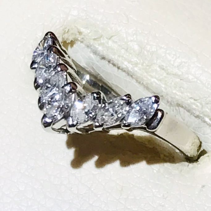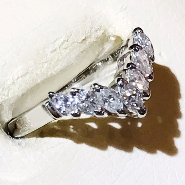 こちらは、Pt900台にマーキスカットダイヤ7石付きV字型リングです。