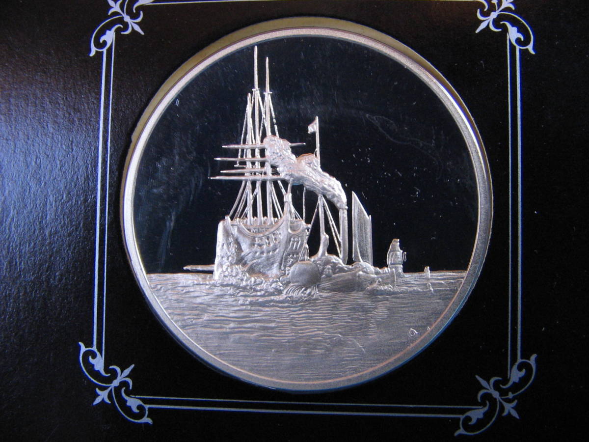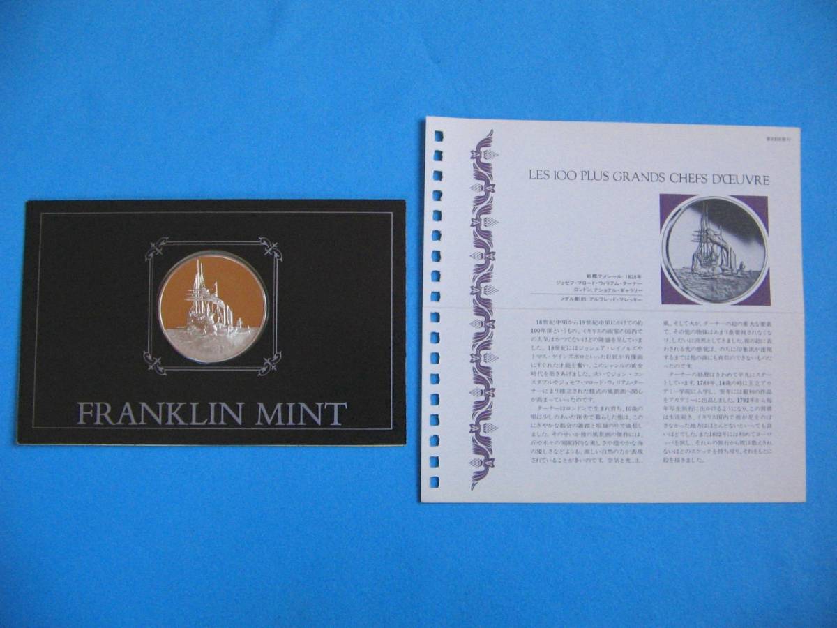 フランクリンミント 925銀メダル ターナー『 停泊地に曳かれてゆく戦艦テメレール号 』 /LES 100 PLUS~プルーフメダル franklinmint
