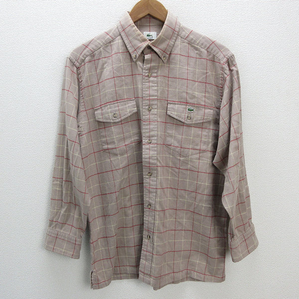 k■ラコステ/LACOSTE チェック柄 長袖ボタンダウンシャツ【3】薄茶系/MENS■76【中古】