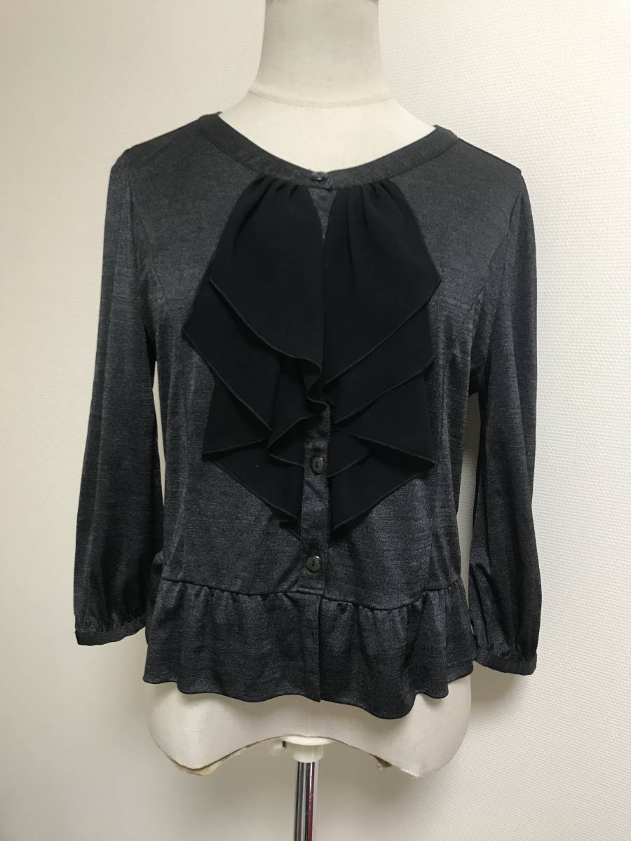 美品★7-IDconceptシフォンフリルカットソー日本製グレーS★9004 | |