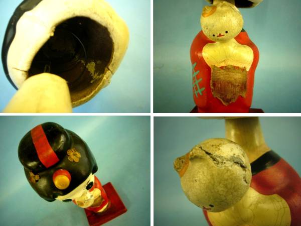| 商品説明 | ■商品サイズ ライター比較参照 ジャンク品扱いでお願いいたします。 お詳しい方にお願いします。 詳しい素材は解りかねますが おが屑を固めたようなものに思われます。 ●所々にヒビ、欠けがあります。(写真参照) (写真枚数の関係上、全部は写せません。ご了承下さい。) ●かんざしはホールに挿してあるだけなので抜けます。 ●底に書き込みがあります。(写真2枚目参照参照) ●製造時によるものと思われますが 頭部内にパテ埋めのような跡があります。(写真3枚目参照参照) ざっと拭きましたがヨゴレがあります。 写真でご判断できるようでしたらお願いいたします。 使える部位も多数あると思いますので パーツ取りやレストア用などにご自分で工夫出来る方 中古のジャンク扱いでお取り引き出来る方にお願いします。 (ライターは比較対照の為のものです。) (写真は解り易いように複数の位置から写しているものもあります。) (写真では実際の色が出にくい場合がありますがご了解下さい。) 写真でご覧のような色ハゲ、糊付けもののヤブレ、ハガレがあります。 中古品ですので経年の色褪せ、ヨゴレ、キズ、スレ 欠け、ケズレ、色落ち、金属部のサビなどがあります。 製造時による型ムラ、塗装ムラ、塗料の付着などがあります。 他にも難があるかも知れません。 その場合はご容赦下さい。 見落とし、書き落としもあろうかと思いますので 画像にてご判断下さい。 写真のものが全てです。 写真でご判断下さる様お願い申し上げます。 落札時に出品者からのメッセージが届きますのでご覧下さい。 (マイオークションの通知設定を非通知にしている場合は届きません) メールが届かない場合はお手数ですがご連絡下さい。 落札後のキャンセルはお受けできません。 |