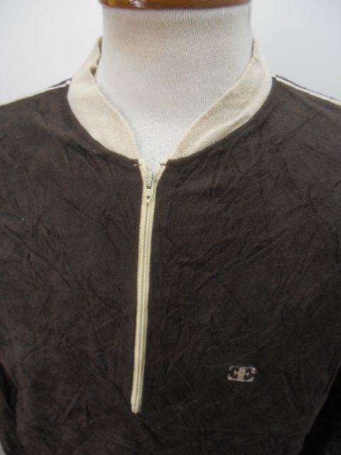 80s ELY 長袖 ハーフZIP シャツ M 茶 モッズ系 Talon アメリカ 古着 c854