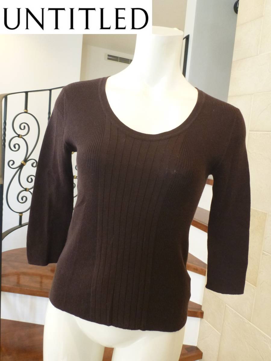 1.4万 美品 UNTITLED  アンタイトル ★茶 7分袖 セーター 2 M相当