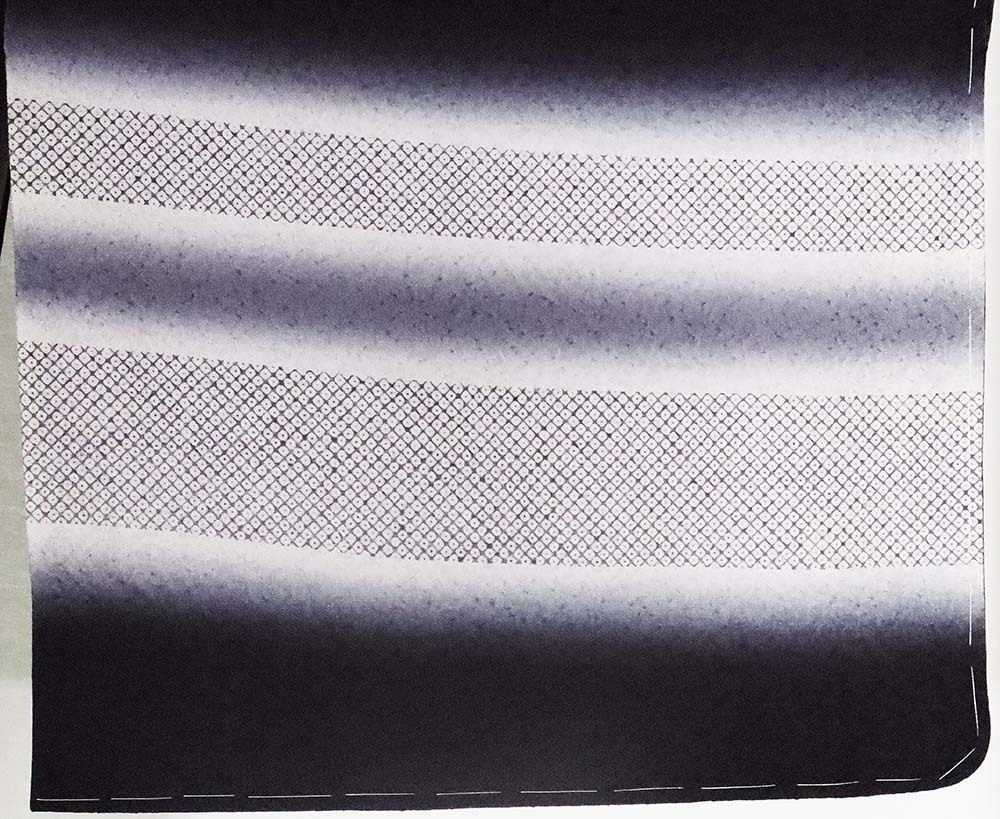 | 友禅訪問着 袷 ふくれ織地丹後縮緬地 黒・ふくれ織地 白ぼかし・鹿の子横縞 169 広襟 新品 仕付け付き | |