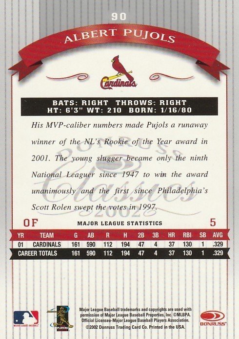 DONRUSS 2002 Classics Albert Pujols 90