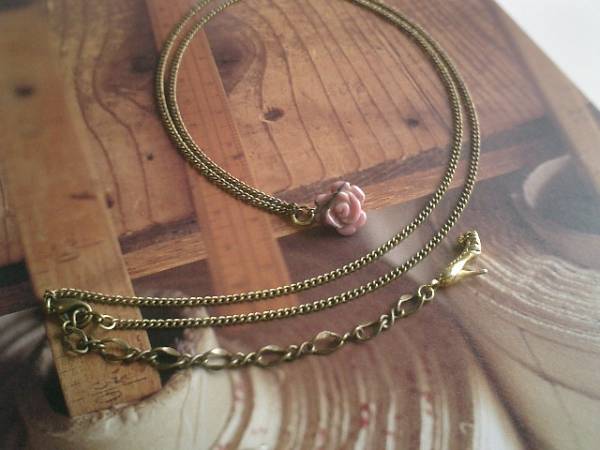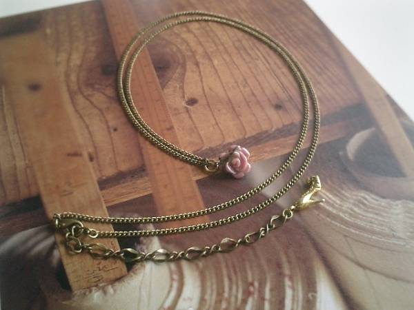 仏蘭西物語・・シリーズです♪薔薇色のモチーフ・・シックなロードナイトの薔薇のネックレスです♪落ち着いたダークピンクの薔薇が可憐な表情です♪13ミリ位のロードナイトの薔薇に繊細なチェーンを合わせました♪長さは74センチ+アジャスター10センチで最長84センチ位です♪お揃いのブレスレットも出品しています♪シンプルで長く着けていただけるデザインを考えて作りました!お揃いのブレスレットも出品しています♪ハンドメイドをご理解頂いてノークレーム、ノーリターンでお願いします