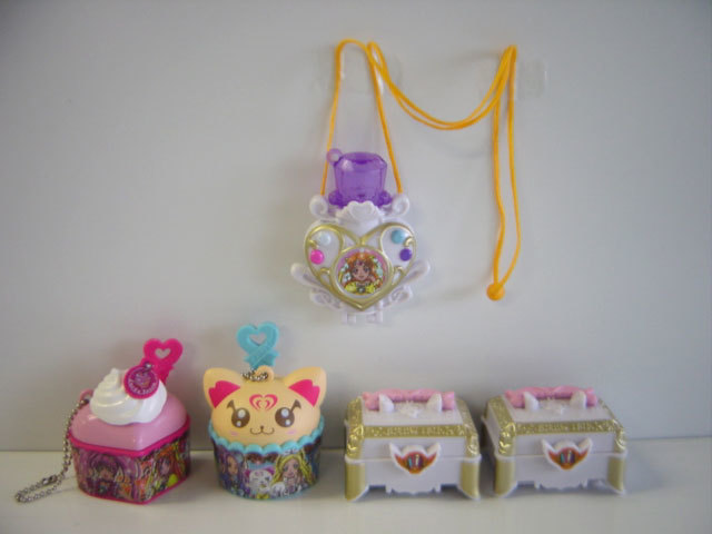 1.ヒーリングチェスト (リングタイプ) 2.ヒーリングチェスト (なりきりタイプ) 3.キュアモジューレ (アクセサリータイプ) 4.ハミィカップケーキ (キュアリズム&キュアビート) 5.カップケーキリング (キュアメロディ&キュアミューズ) |