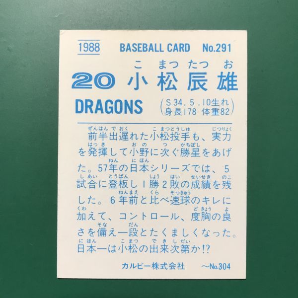 1988年 カルビー プロ野球カード 88年 291番 中日 小松  【管理NO:4-14】