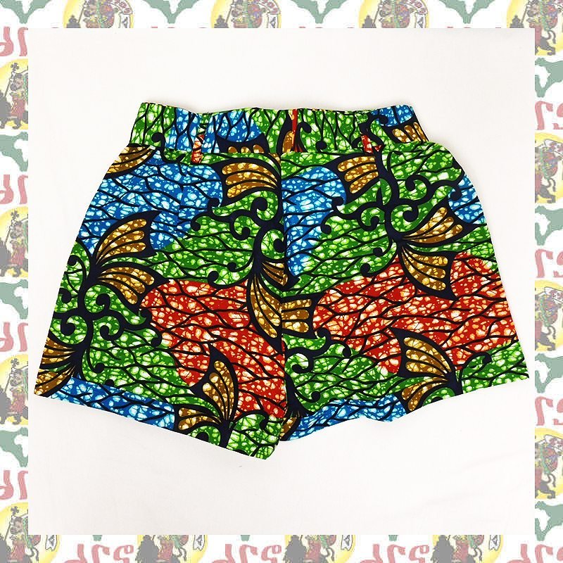 アフリカン ショートパンツ ビーチパンツ L a51 (アフリカ生地 アフリカ布 アフリカンファブリック ワックスプリント)