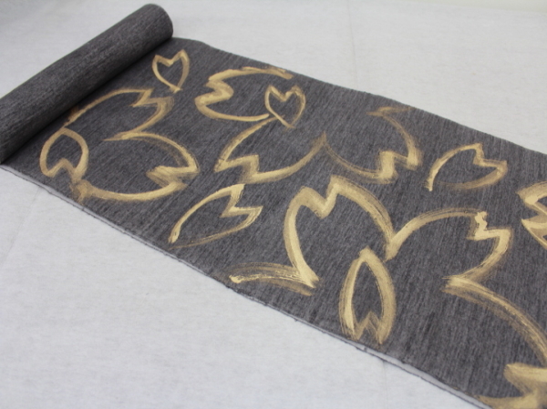 楽布特選 92387  墨染め「桜」の九寸名古屋帯 新品反物 lwt