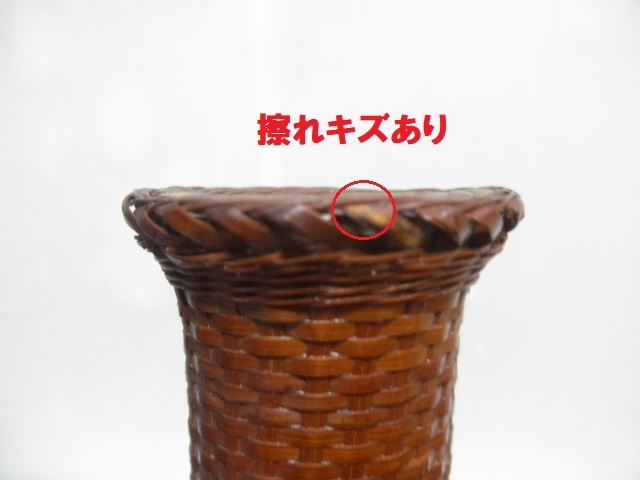 | 古い竹細工の花器です。 筒の中に白い陶器の一輪挿しが入っております 画像で表示のように口のふちにわずかな擦れキズ,汚れが、見られます。 底部にわずかにぐらつき及び傾きがございます。 ※一輪挿しの下の木工花台は、ついておりません。撮影用です。 ご理解ください。 サイズ 上径5cm 高さ16.8cm ーーーーーーーーーーーーーーーーーーーーーーーー ゆうパック60サイズ および追跡保証なし定形外920円 ーーーーーーーーーーーーーーーーーーーーーーーーーーーー 神経質なお方・些細な事が気になるお方、または、新品をお求めのお方は、ご入札をお控えください。 画像に写しきれないキズや見落とし等あるかもしれませんが、ご理解の上ご入札をお願いします。 中古品をご理解の上、ノークレームノーリターンでお願いいたします。 アンティークの為、お客様との見解の相違が多少あるかと思いますがご理解の上、ご入札よろしくお願い致します。 | |||