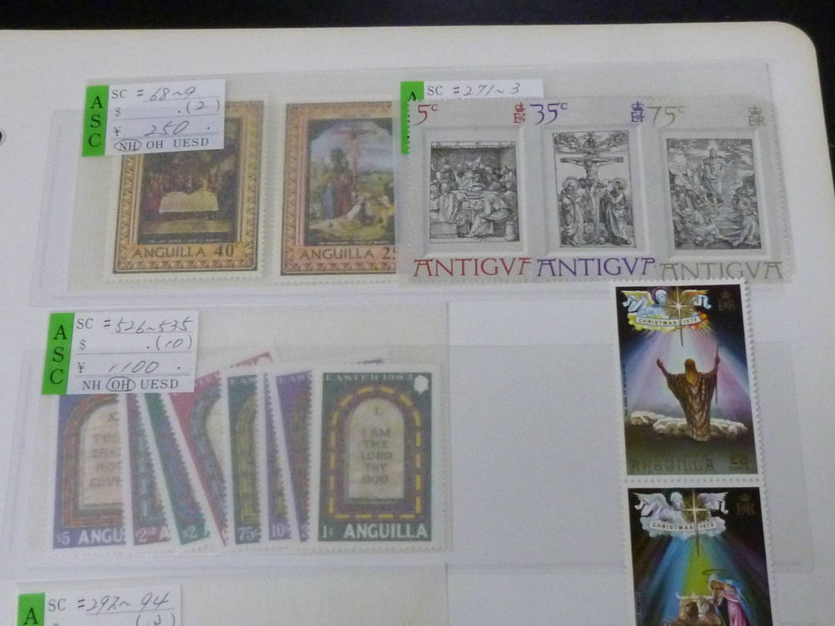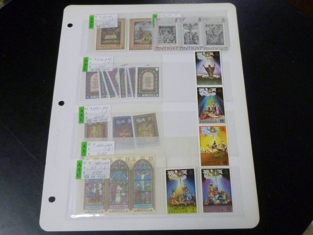 21LA P №5 宗教関連 切手 アンギラ・アンチグア 各完揃 計28種 1リーフ 未使用NH・VF