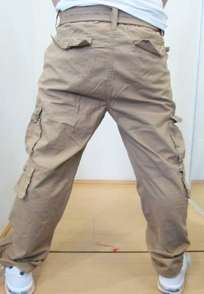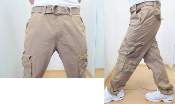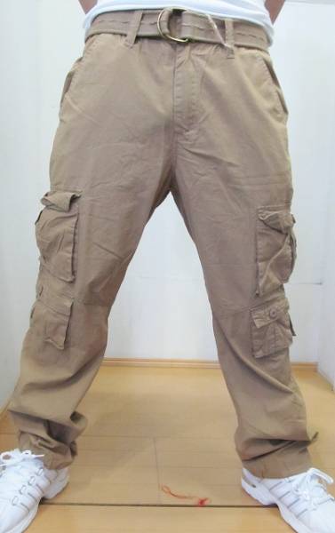 AC87)SMOKE RISEベルト付カーゴパンツ ウィートB系HIPHOP/32/36