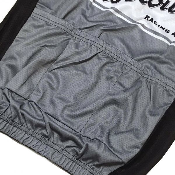 トップスはフルジップタイプ、背面にウェア滑り止め、バックポケット付きです。