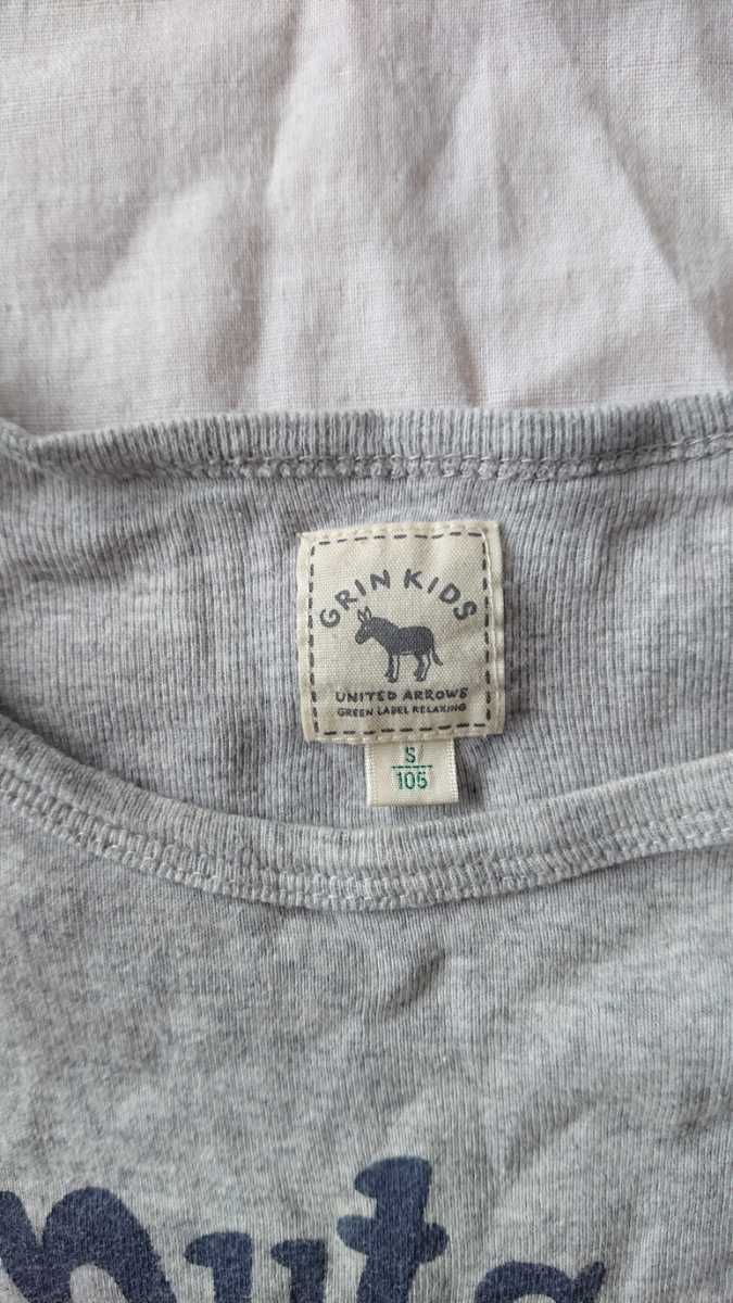 ユナイテッドアローズの子供用Tシャツです。サイズは105 。肩幅24.5cm、身幅27.5cm、着丈36cm。アメリカ古着的なイラストはとてもカッコイイです。