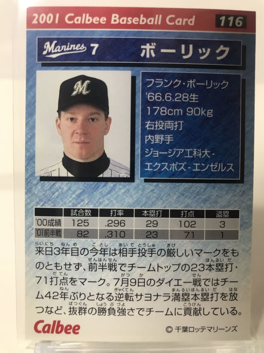 ボーリック 116 カルビープロ野球チップス 2001 ノーマルカード 千葉ロッテマリーンズ
