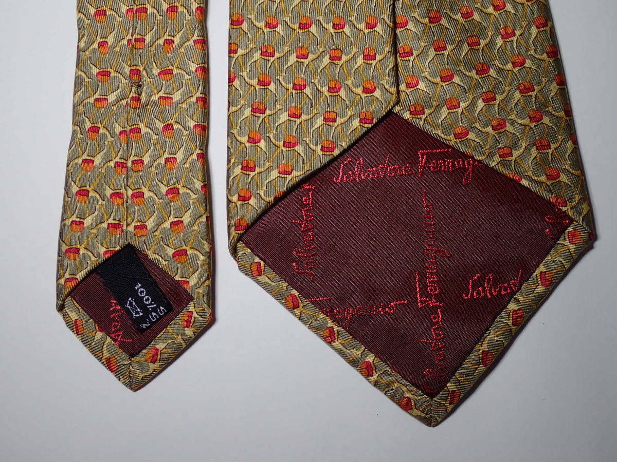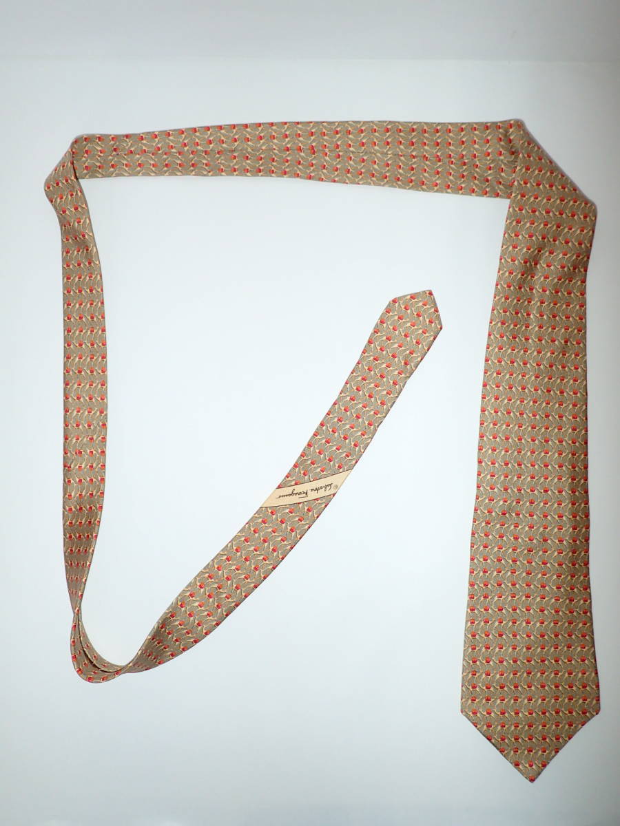 Salvatore Ferragamo サルヴァトーレ フェラガモ ネクタイ キャメル? 茶色系 ラクダ シルク 幅:約9.7㎝