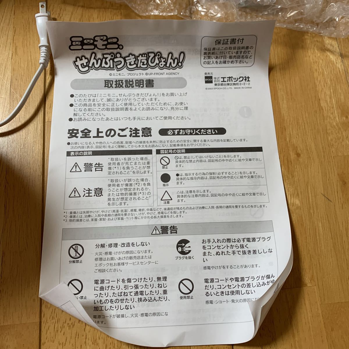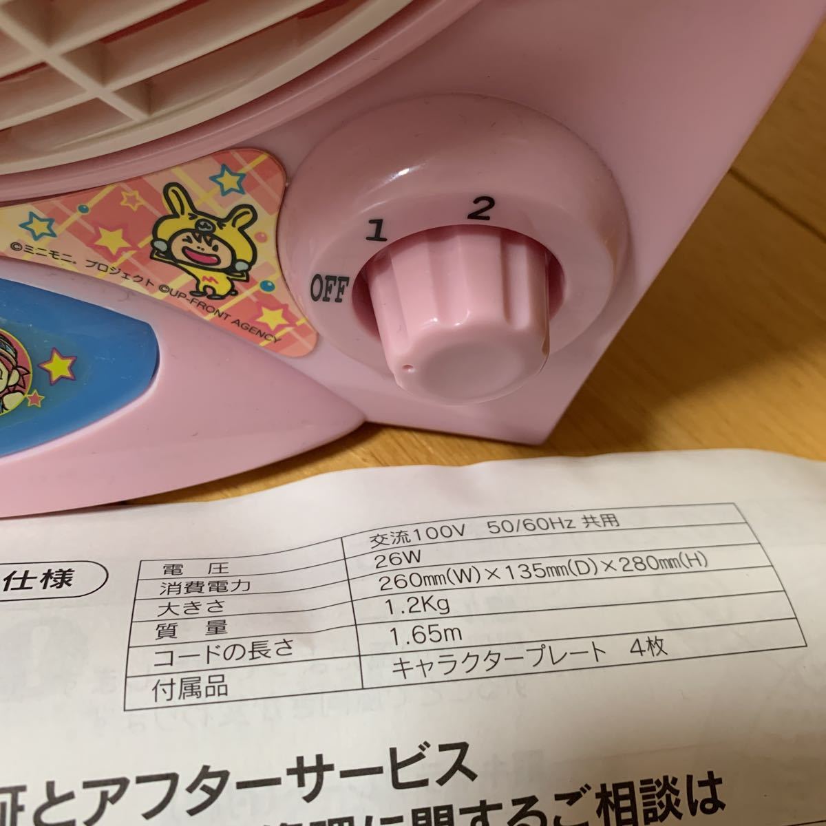 扇風機 ミニモニ。せんぷうきだぴょん! モーニング娘。動作確認済 説明書付き エポック社 レア 希少 開封品 未使用品 送料無料の出品です。 納戸の整理(断捨離)で今後使用予定が ない為出品しました。 衣装ケースに入れて保管してました。 サイズ 横26cm 縦28cm 幅13.5cm