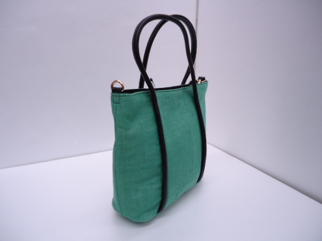 【KCM】bgg-24★新品★レディース 2way ミニトートバッグ ショルダーバッグ 麻 グリーン系 約W21×H20×D8cm