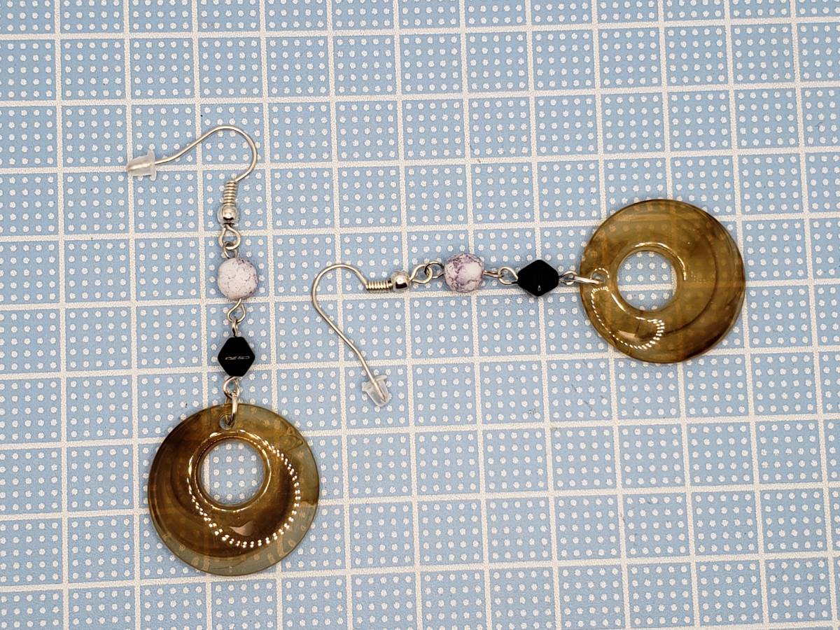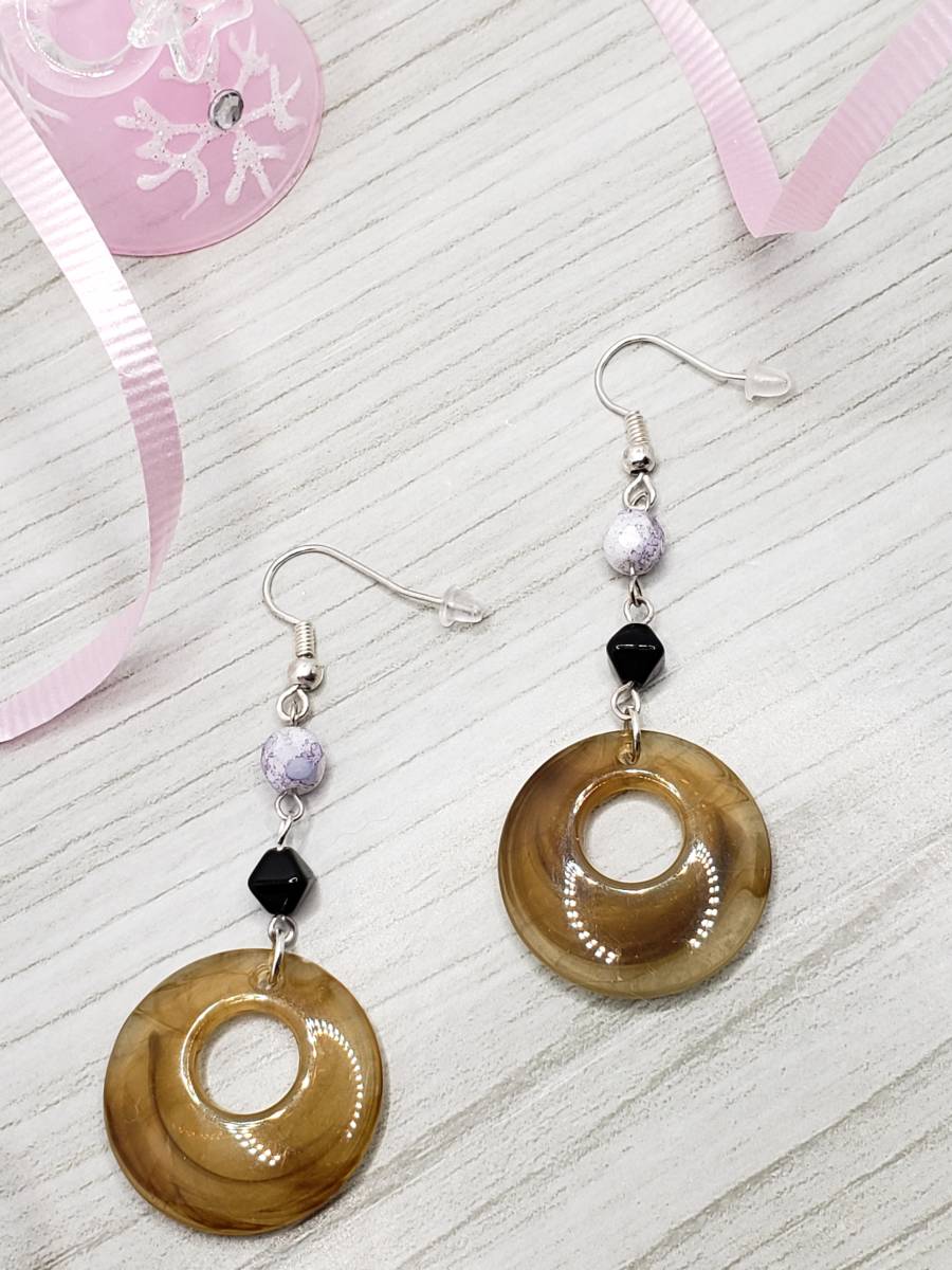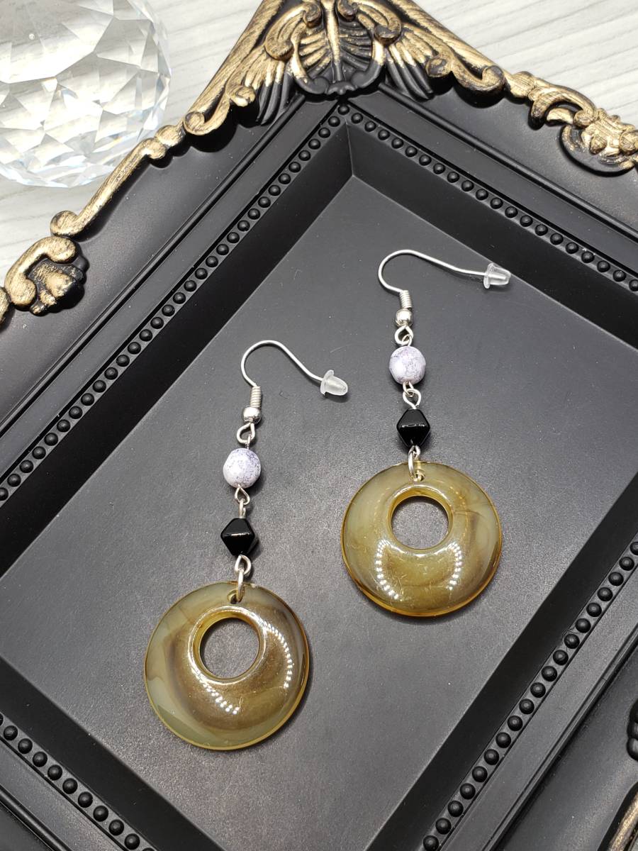 ★ハンドメイド イヤリングorピアス 418 樹脂フック・バネ(クリップ)式イヤリング金具など変更無料 チェコ マーブル リング★