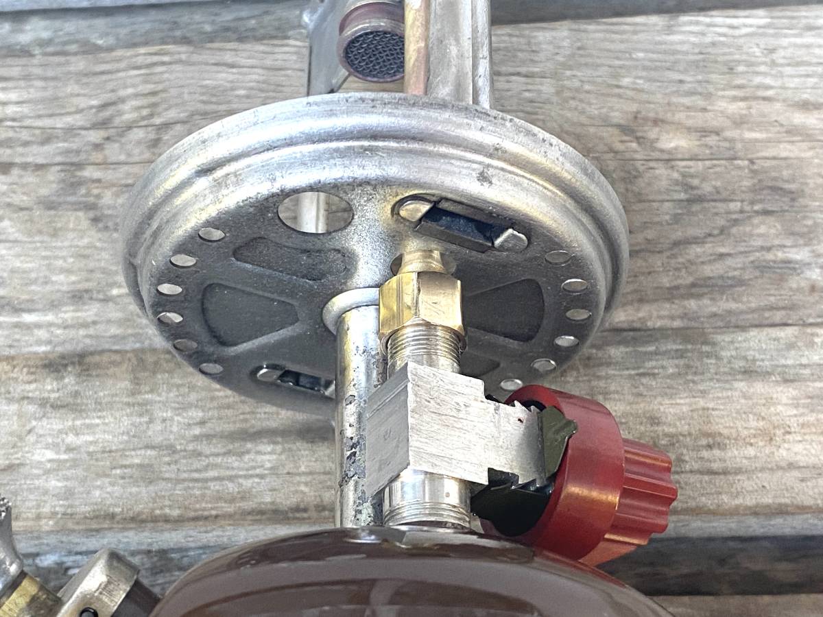経年なりの使用感、タンク底面に経年なりのペイントロスがあるものの、製造年月の刻印は鮮明に読み取れます。