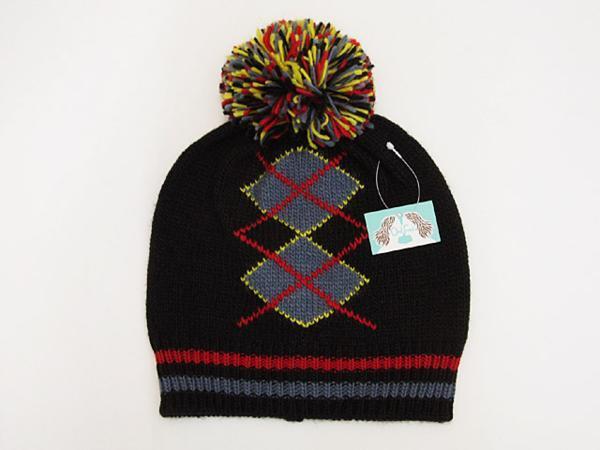 OrdinaryFederation アーガイル柄ニットキャップ 黒ブラック / CAP帽子ボンボリボンボン
