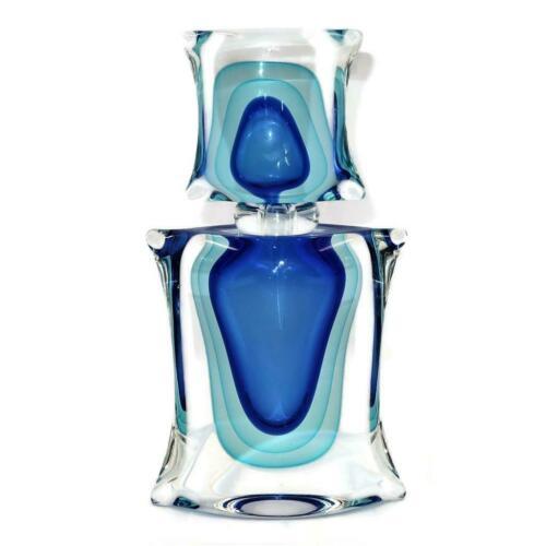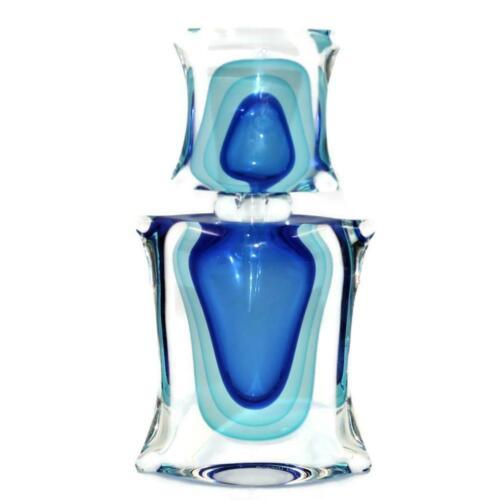 Sommerso 香水ボトル 瓶 サイン入り ルイージ オネスト ムラノ イタリア ブルー & アクア 10 1/4" MCM ムラーノ Murano