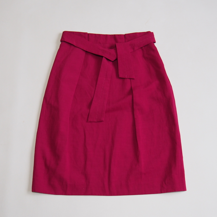 上品な光沢とリネン混ならではのナチュラルな表情持ち合わせたツイル素材のスカートです。 さらりとしたタッチで肌触りが良く、フロントのタックとバックウエスト部分のギャザーでほど良くボリュームを出し、女性らしい丸みのあるシルエットに仕上がっています。定価17600円です。