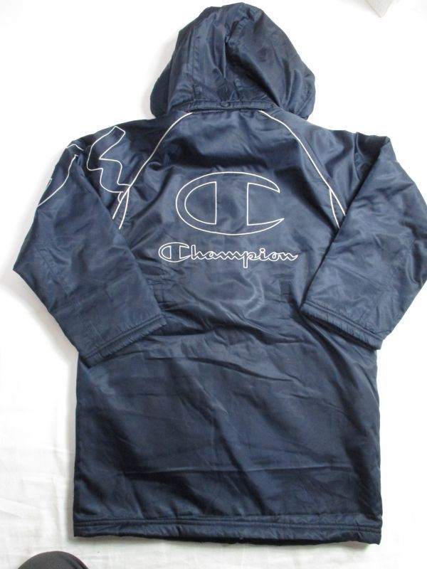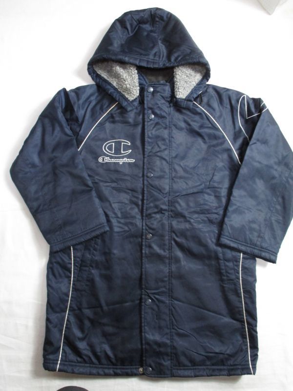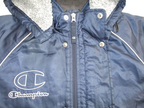 BC820【Champion】チャンピオン ロゴ刺繍 中綿入り 裏地ボア フード取外し可 ベンチコート 男児 濃青 130 | ||
