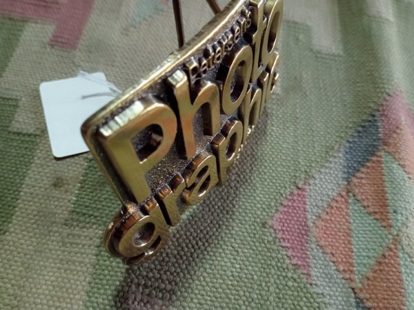 | 商品説明 | アメリカのスワップミートで購入した バックル 裏に MADE IN USA・1979の刻印他(詳しくは画像を参照) 1979の刻印から 1979年製と思われます。 USED品なので 細かな傷・ヨゴレ等 使用感あります。 実寸サイズ(最大) 定規を置いた画像があります。参考にしてください。 ・縦-約59mm・幅-約85mm・プレート厚み(縁)-約2mm ベルト幅 - 約44mmまで 通せます。 素材 ・表示ナシ(磁石に反応する金属) 重さ ・約181g(家庭用の計りで 計っていますので 誤差が出る 可能性があります。) メーカー-表示なし 生産国-USA 他にも アクセサリーやカントリー雑貨等を 出品してますので お好きな方は 見て下さい。 出品物は バックルで その他備品は 付きません。 |