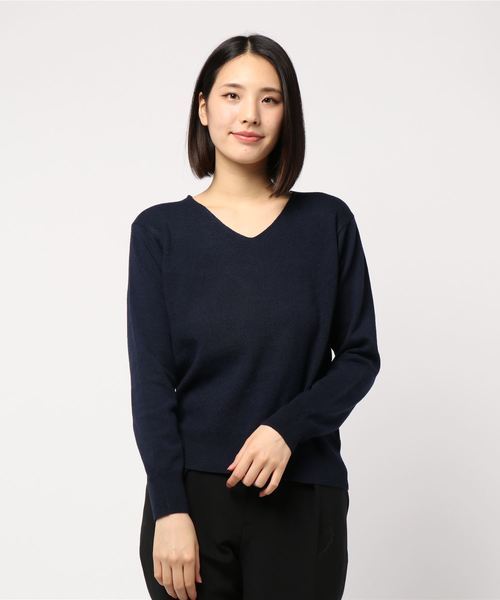 前身を片畦で仕上げたシンプルなデザインのVネックプルオーバー。