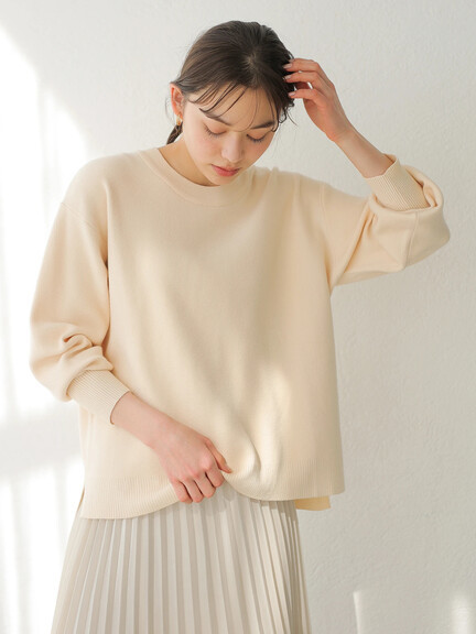 ソフトな風合いに仕上げたレーヨン混スムースニットのプルオーバー。