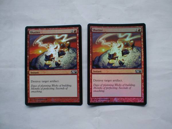 B知人の委託品です。 画像が全てです。 MTG 粉砕/Shatter foil 英語3枚です。 何語だか分らない時があります。 エキスパンション、外国語(言葉)は画像で確認をお願いします。 カードはプレイしています。 程度はカードに目立つ擦り傷、キズ、ペン跡のようなキズ、汚れ、角や端に傷、黒枠にキズ、などのキズが結構あります。 カードからタバコや香水の匂いがします。 カードが丸まっていたり反ってたりしています。 気が付かない部分がありますので程度を気にする方は入札をご遠慮下さい。 程度は下、ボロです。 コレクションには向きません。 何か起きた場合には自分では対応が出来ませんのでご理解頂ける方のみ入札をお願いします。 普通郵便、クロネコメール便で発送します。 郵便事故や郵便破損が起きた場合には保障できません。 ノ-クレーム、ノーリターンでお願いします。