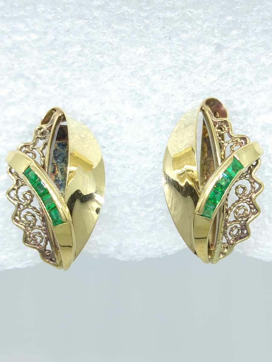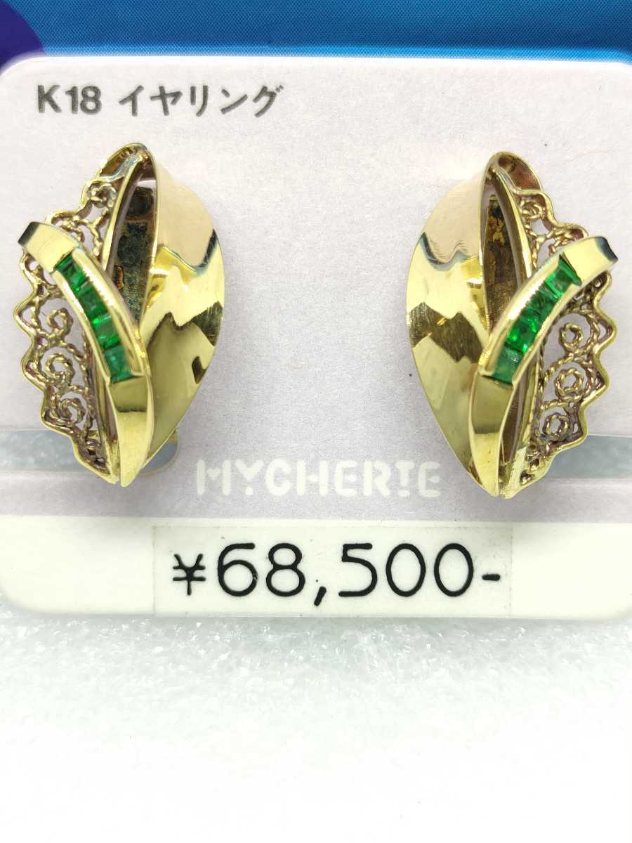綺麗なデザイン中に、エメラルドが4石ずつ配されておりオシャレで上品なイヤリングに仕上がっています。
