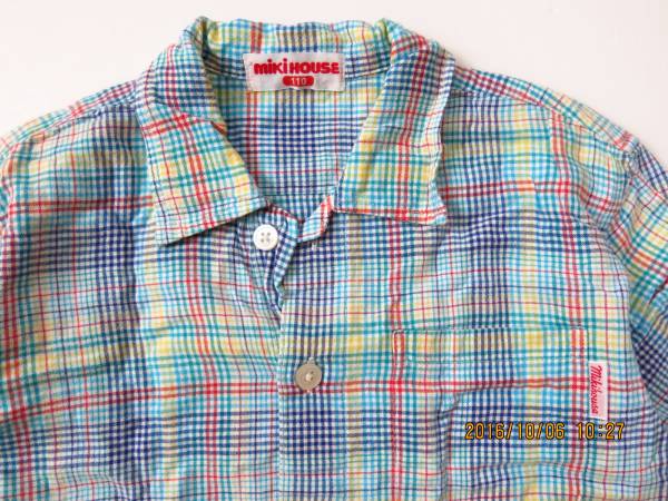 ミキハウス【110】爽やかチェックの半袖シャツ★男女兼用