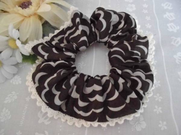 ★シュシュ★リバティ★パフ★ブラウン系★ショップ限定★m