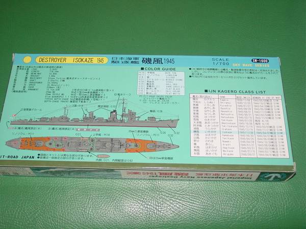 1/700 ピットロード スカイウェーブシリーズ W87 大日本帝国海軍陽炎型駆逐艦 「磯風 1945 最終時」、大和水上特攻天一号作戦時の姿が再現できます。開始価格で即決いたします。中袋未開封の新品ですが外箱のわずかな擦れ等ありましてもご容赦下さい。完璧な新品状態を望まれる方、神経質な方は入札をご遠慮下さい。発送方法は郵便局の定形外郵便(輸送中の事故補償及び追跡番号無し)または宅配便(ヤマト宅急便・佐川急便・ゆうパック、いずれも全額保証・追跡有り・対面手渡し)からお選びいただき、お知らせ下さい。定形外の送料は落札後にお知らせいたします。定形外に追跡番号が付けられる特定記録郵便は160円プラスとなります。宅配便の送料は自己紹介をご覧下さい。よろしくお願いいたします。