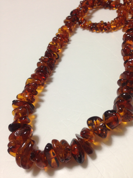 琥珀のロングネックレスです★ ネックレスの長さは66センチで重さは59グラムです。