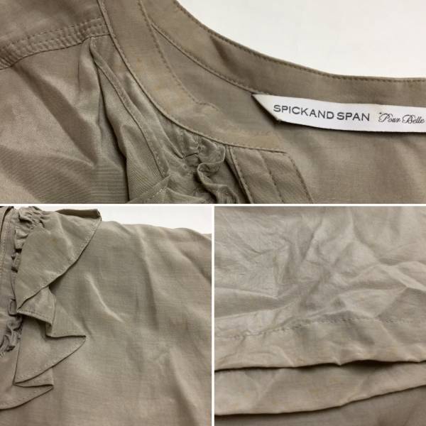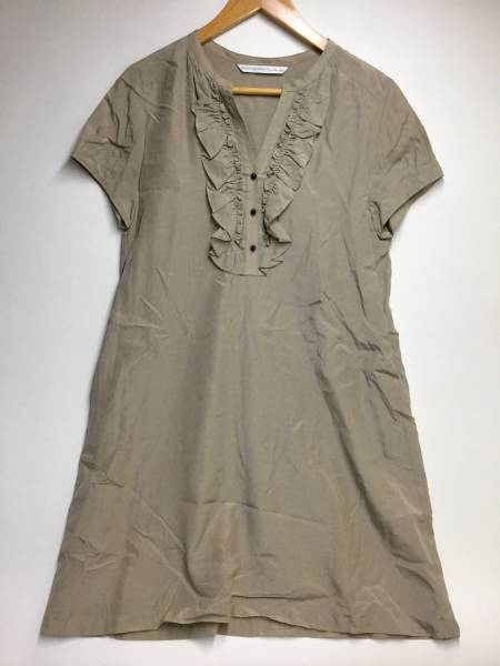 SPICKAND SPAN 半袖 スキッパーワンピース フリル グレー チュニック ハーフボタン 裏地有 日本製