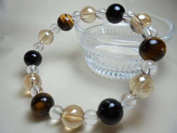 ご覧いただき誠にありがとうございます。 あなたの、心に届きます様に・・・ タイガーアイ: 茶色の地に、金色の光がキラキラ光るのが特徴です。 金運、財運、仕事運のアップのお守りに。またこの光は、「次の次元への扉」を指し示し、新たなことへの挑戦へのステップアップを導くとされます。 特に事業に関する事柄には強力にサポートすると言われます。営業マン、新規プロジェクトの立ち上げ、就職、受験などのお守りにどうぞ。 オニキス: 邪念まみれになって揺れる心を、しっかりつかまえて重しとなり、 余計な念を払いよけ、意思を強めてくれるとされます。 心と身体に一本の柱を通すように安定させるので、 自らの持つ本来の実力を遺憾なく発揮出来るようになると言われます。 冷静に物事を見、適切な判断で良い方向へ場を導く支えとなるとされています。 瞬時の判断が必要なスポーツ、行き詰まった仕事の打開、自分自身への問いと答えなどのお守りにどうぞ。 水晶: 万能のパワーストーンとしてお馴染みです。邪気祓い、場の浄化の他、あらゆる開運のサポートとして力を発揮するとされます。 古くは氷の化石と思われ、水のような透明感で悪い気をそそぎ流してしまうと信じられてきました。潜在能力の発掘にも役立つと言われます。 場や気の浄化、各種開運、精神統一、願掛けなどのお守りにどうぞ。 複数落札頂くと、送料お引きします。 2000円以上の商品(ブレスレット)は、ギフトボックス(紙箱)無料で付きます。 ギフトボックス(紙箱)は、100円です(ギフト用の包装は行ってません) 「商品詳細」天然石: タイガーアイ 約10mm 3石 オニキス 約10mm 3石 ゴールデンオーロラ水晶 約8mm 6石 水晶 約6mm 12石 サイズ:約18cm 内径 約16cm 伸縮性の有るポリウレタンゴム又は、シリコンゴムで製作されています。 この商品には、ベロアの袋が付いています。 石の大きさやガラは、一個一個違いますので、ご了承ください。 必要以上に引張ったり、落としたり等、壊れたり、割れたりする事もございます。 天然石は特有の不純物、内包物、色むら、天然キズ、ひび等が有る場合が御座います。 撮影の際、ライトあてる為、通常よりも発色が明るく見えたり、モニターや見る場所のライトの色、明るさ等で見え方が若干異なる場合、変わります。 *サイズとサイズのお直しについて* 平置きして、直線にした時のサイズで、内径は小さくなるので、ご注意ください。 サイズのお直しのご希望の際は入金前に、ご連絡をお願いします。 小さくする時と、大きくするのは、1cmまでは無料で行います。 発送、到着後のサイズのお直しは、有料になります。 オリジナルや複数個ご希望の方は、ご連絡下さい。 発送方法 お得な(送料、箱付き)情報は、自己紹介をお読み下さい。 *** 通常は発送方法は、クリックポストでの発送になります *** ・クリックポスト-日本郵政 厚さ3cmまで、180円 ※配達状況が確認出来る発送方法に限ります。 アクセサリー等は、複数落札で送料お引きします(配送手段は基本的に選べません) 2個で、140円、3個以上(1000円以上)5個まで80円 6個以上は、送料無料です。 ただし、商品ページに、配送方法が明記して有る時は、高い物の料金に成ります。 ** クリックポストのご利用の際の注意 ** 配送中の、トラブル、潰れ、破損等、到着にかかる時間等は、一切責任は持つ事ません、ご理解の上ご利用ください。 201510010700 | |||