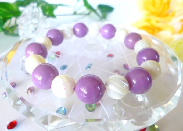 ★レア★奇跡のヒーリングストーン★天然色☆高品質AAA☆フォスフォシデライト☆大珠12mm☆マザーオブパール10mm☆16.5cm