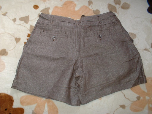 kl 美品☆即買♪オンワード樫山ベージュ麻ショーパンプリーツリボン